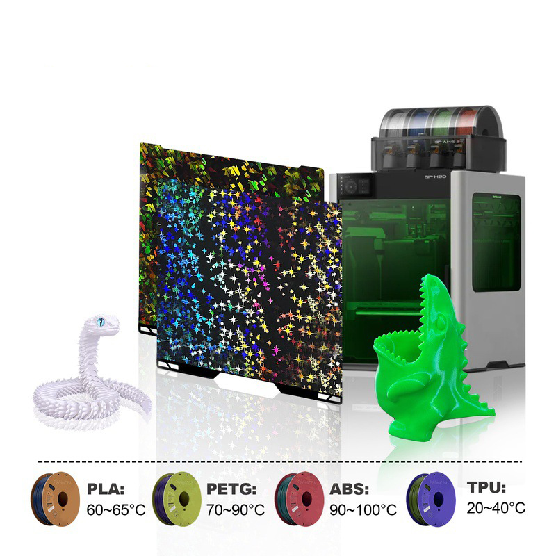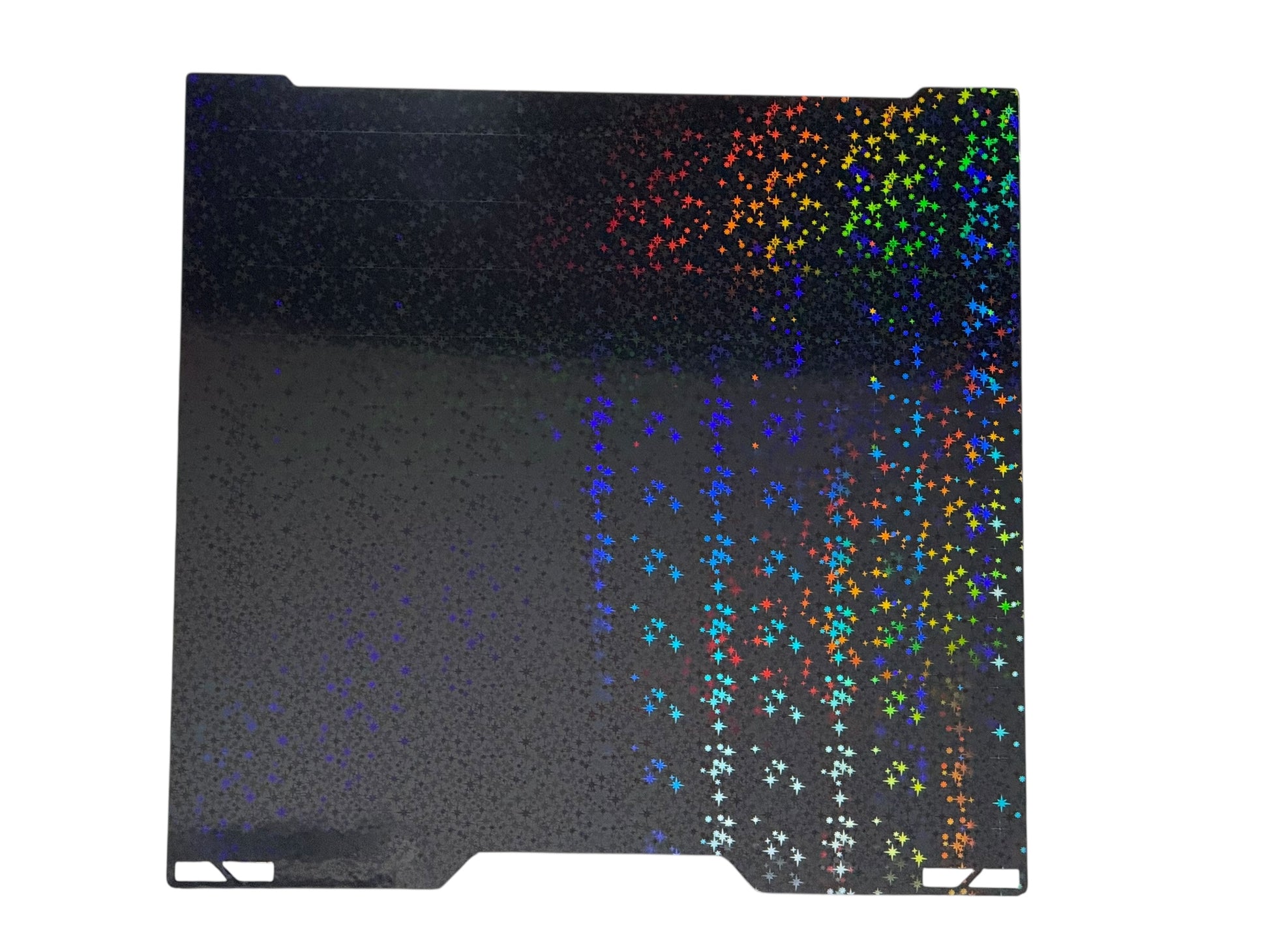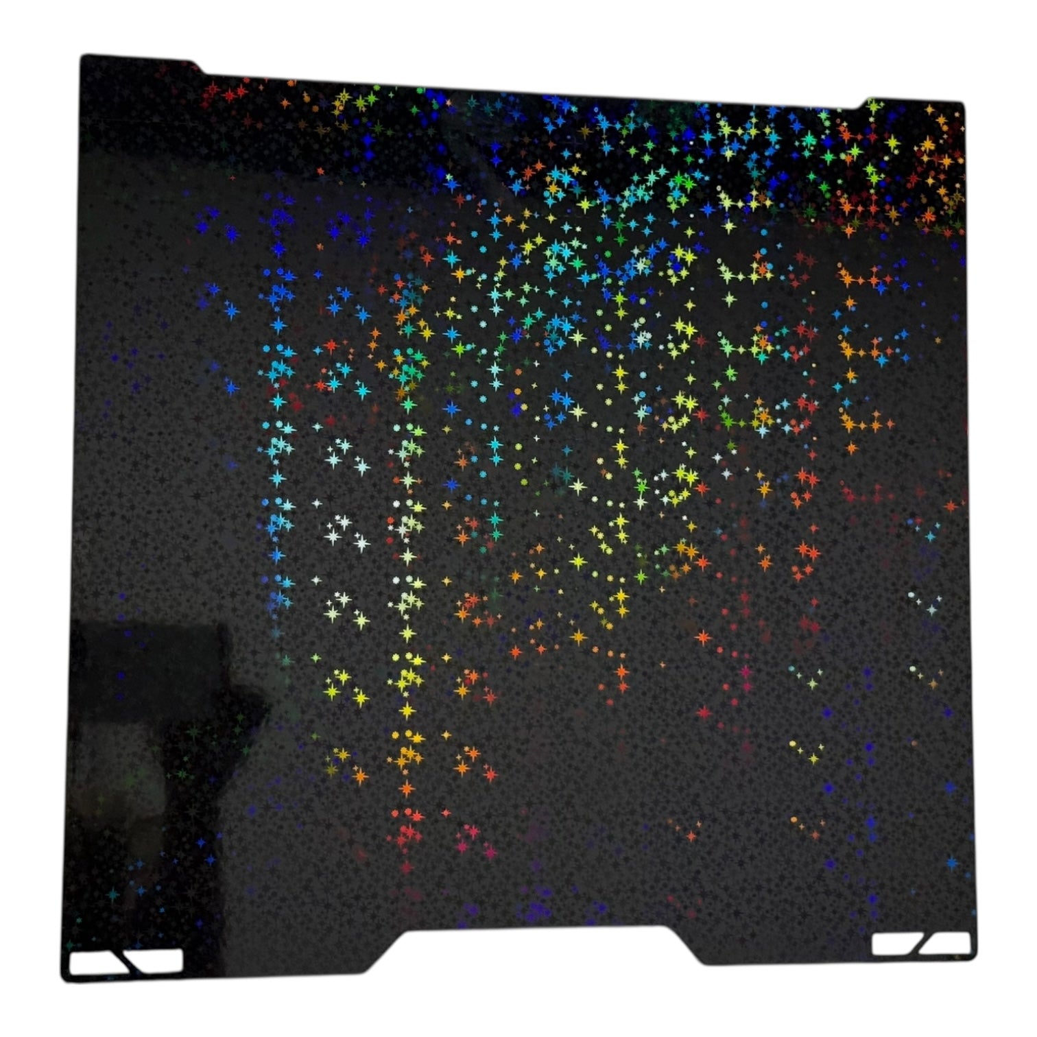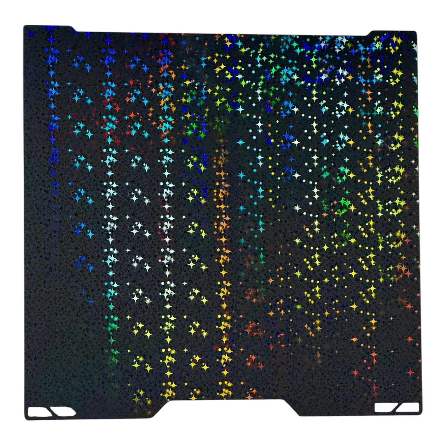 The PEF Flake side offers a finely textured matte surface for strong first-layer bonding and reduced warping — perfect for functional parts, prototypes, and everyday printing. Flip to the PEF-Star side to achieve a sleek, shimmering finish ideal for decorative or display prints that need a polished look.