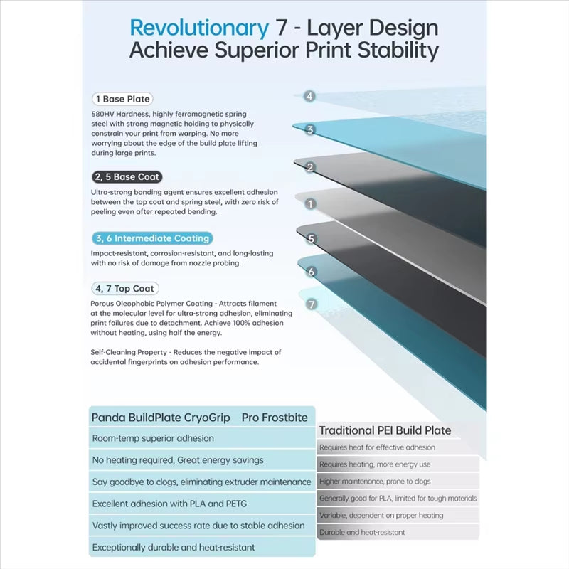 The Frostbite Plate delivers a perfect balance between adhesion and release — ensuring strong first layers without damaging your models or surface coating.