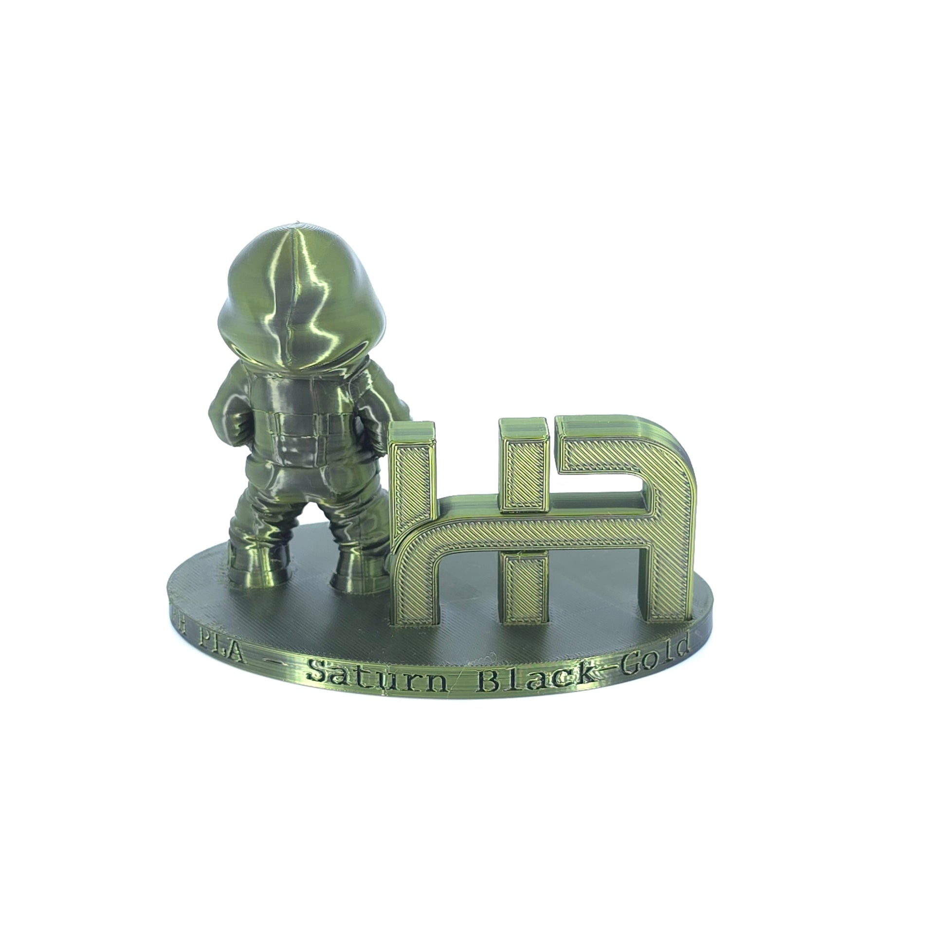 PLA Saturn Black-Gold features a deep space black base infused with flowing gold and olive tones that shift as the model curves and twists. The result is a rich, satin-like finish with dramatic light play, making every print look dynamic and premium without the need for post-processing.